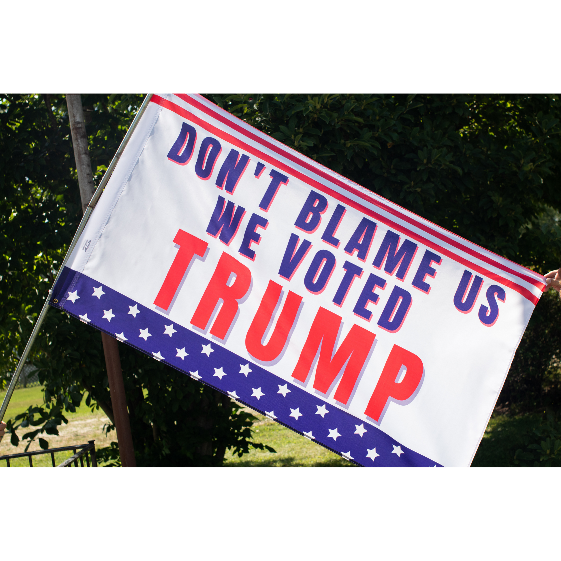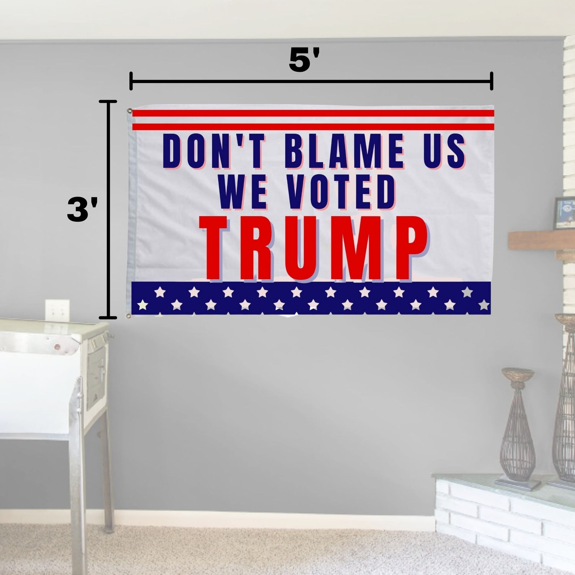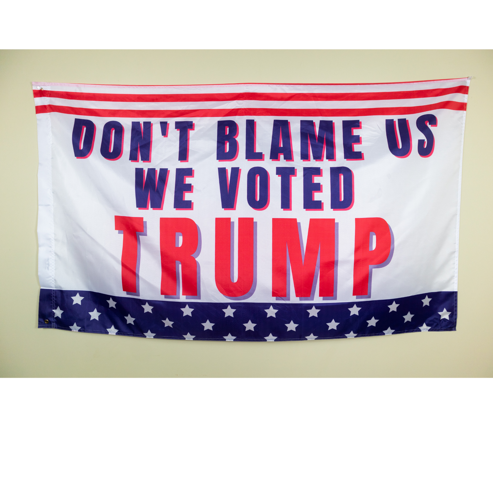 - Not My President ! Anti Biden 3x5 ft Flag - Don’t Blame Us We Voted Trump! Funny single-sided 3x5 ft wall/outdoor flag to show your neighbors it’s not your fault. Comes with 2 grommets on the side - The print comes printed on one side.