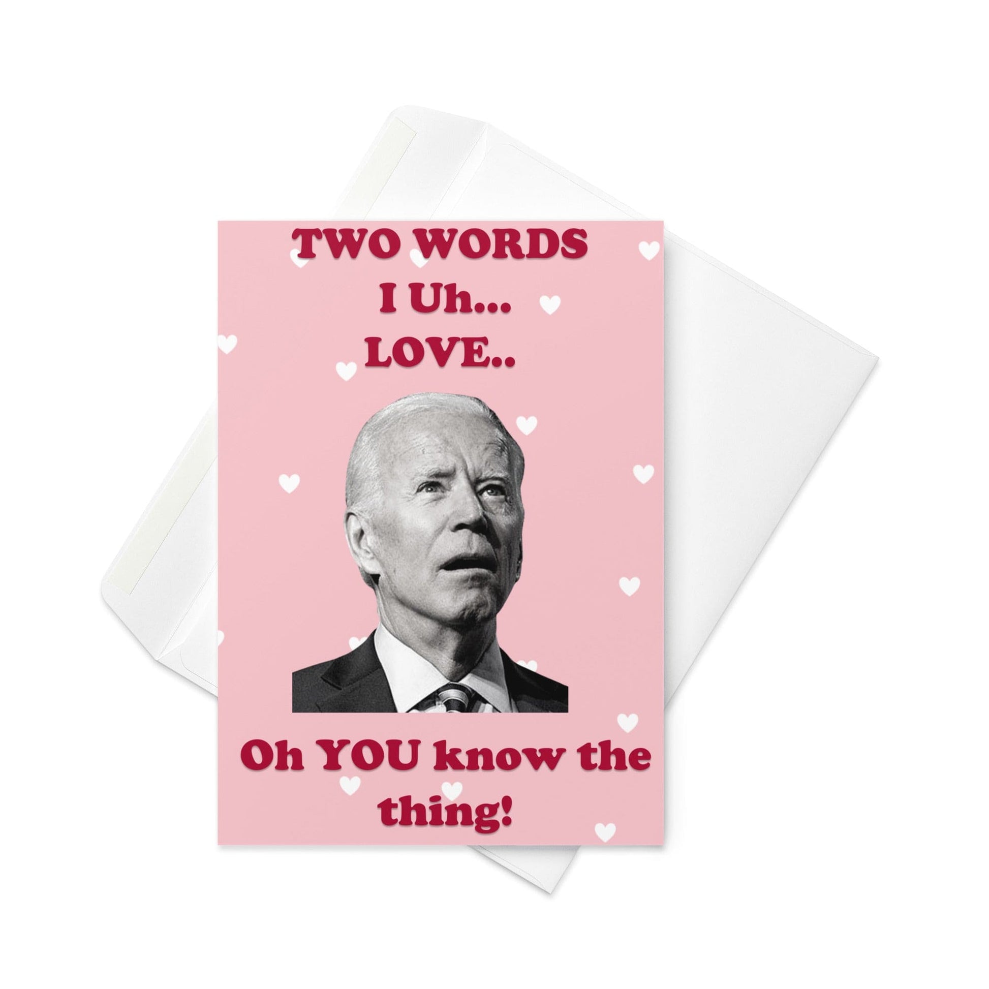 Looking for the perfect Valentine's Day card for your lover? Look no further! This hilarious card features bumbling Joe Biden text on the front that reads "I Uh... Love Uh... Oh You know the thing." Inside, the card reads "See... I didn't forget." This card is sure to make your loved one laugh and show them that you care even if your words aren't always perfectly articulated. Give it as a funny and unique gift to your sweetheart this Valentine's Day or for that upcoming Anniversary.
